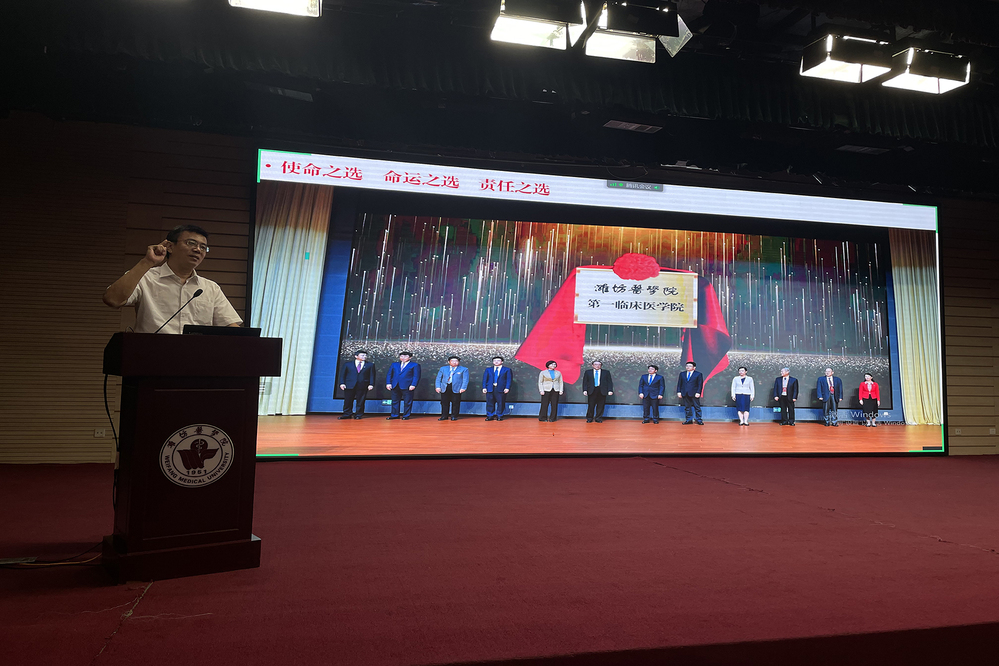 会上,教师代表刘海霞为同学们临床学习给出了指导;副院长胡强讲解了人民医院的教学特色,给同学们指出了学习的方向;院长孙丽福介绍了人民医院历史沿革,给同学们大学生活提出了五点要求;党委书记丁木金强调了本科阶段的培养目标,希望同学们养成良好习惯,坚持体育锻炼,树立正确恋爱观,实现自己的理想。