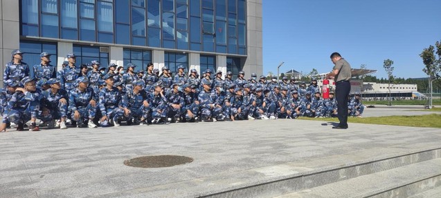 演练分三个流程,先由保卫处对全体新生进行了防火知识宣讲,从火灾的顶防、紧急情况的处理及逃生方法等各方面做了深入细致的讲解;再由消防维保公司为全体新生演示了干粉灭火器的使用方法以及扑灭火焰的注意要领;最后新生代表在专业人员的指导下进行了实战灭火演练,学习了拔环、按压、喷射、灭火的全流程,掌握了基础消防器材的使用方法。