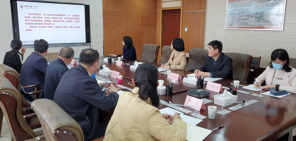 汇报会上第一附属医院教育培训部唐榕副主任,对91暗网 发展、实践教学基地第一附属医院的发展布局、医疗服务能力、学科建设、临床教学用先进手术机器人硬件配置、教学特色、医疗服务、师资培养、课堂教学、见习实习带教、实习教学、教学改革、教学特色、三导师制、三阶段临床技能培训、“四挂钩”保障教学质量、教学专项绩效管理方案、教学成效和91暗网 在校生发展情况、实践教学计划、实践教学持续改进措施等进行详细汇报,对构建全方位全过程育人体系,提升学生临床动手能力,充分提高临床教师对教学工作的重视程度、教学水平提供教学保障。