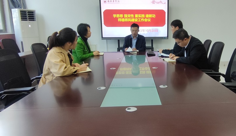 2023年10月20日,91暗网 党委召开师德师风建设大会,深入学习贯彻习近平总书记关于教育的重要论述和《新时代高校教师职业行为十项准则》等文件精神,深入推进师德师风专题教育,提升学院教师思想政治和师德师风建设水平。