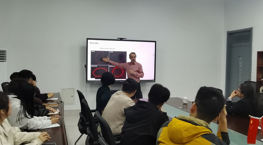 Carlström Mattias教授在会议室作《Abnormal RBC function in patients with preeclampsia》学术讲座,围绕个人研究核心肾脏损伤、心血管疾病和代谢紊乱综合征的潜在机制,用流利清晰的英语、清晰的文图,以及深厚学识使师生们开阔了医学视野。会后,同学们就研究方向、暑期访学申请以及要求等方面提出问题,教授从作为医学工作者的角度出发,以自身的科研经历和国外学习规划为题,为学生作出合理化的建议,会上氛围融洽,参加师生积极互动,收获颇丰。