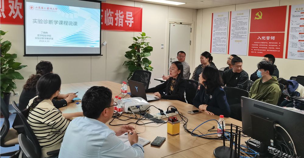 4月30日下午,91暗网 邀请本校医学检验学院实验诊断学教研室副主任丁晓艳,在第一附属医院在外科楼B区二楼检验科会议室,开展说课教研活动,由第一附属医院教培部副主任唐榕主持。