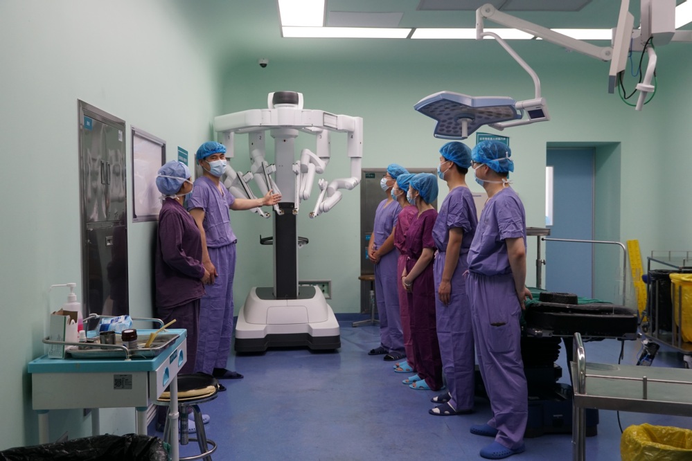 首次“早临床”实践活动分成六个小组,专业培训后,同学们在带队老师的带领下走进心内科、儿科、脊柱外科、耳鼻喉科、神经外科、妇产科等门诊科室,在带教医师耐心的指导下,学习各个科室就医流程、问诊技巧,走进手术室,观摩医生使用达芬奇机器人操作演示。