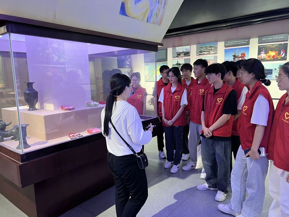 实地考察见变迁,黄河治理展新篇。志愿服务队成员前往黄河三角洲,重走习近平总书记考察路线,亲身体验黄河口生态环境,走进黄河三角洲生态监测中心,通过大屏幕直观了解黄河流路变迁、水质和生物多样性等情况;走进鸟类博物馆和天然柳林,了解黄河三角洲湿地风貌和珍稀鸟类,实地考察黄河三角洲候鸟栖息地中野鸭、丹顶鹤等野生动物的繁衍和栖息环境,切身体会到党和国家对黄河生态治理的重视。