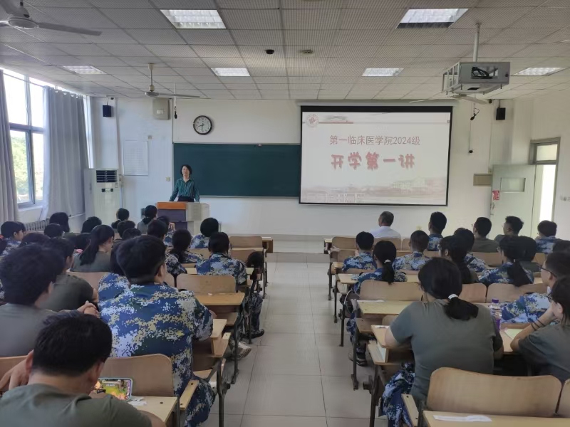 会上,丁木金通过线上方式发表致辞,表达对新生的欢迎,从四个层面提出要求。一是个人层面,希望同学们身心健康,同学和睦,品德优良,学习努力,目标远大,学业有成;二是生活和宿舍层面,要相互理解包容,相互尊重,个性服从共性,达到尊重、友爱、整洁、互助;三是班级层面,希望班级活泼向上、学风优良、凝聚有力;四是年级层面,要在德智体美劳五个方面唯旗是夺,向学校展示第一临床优良的的精神风貌。