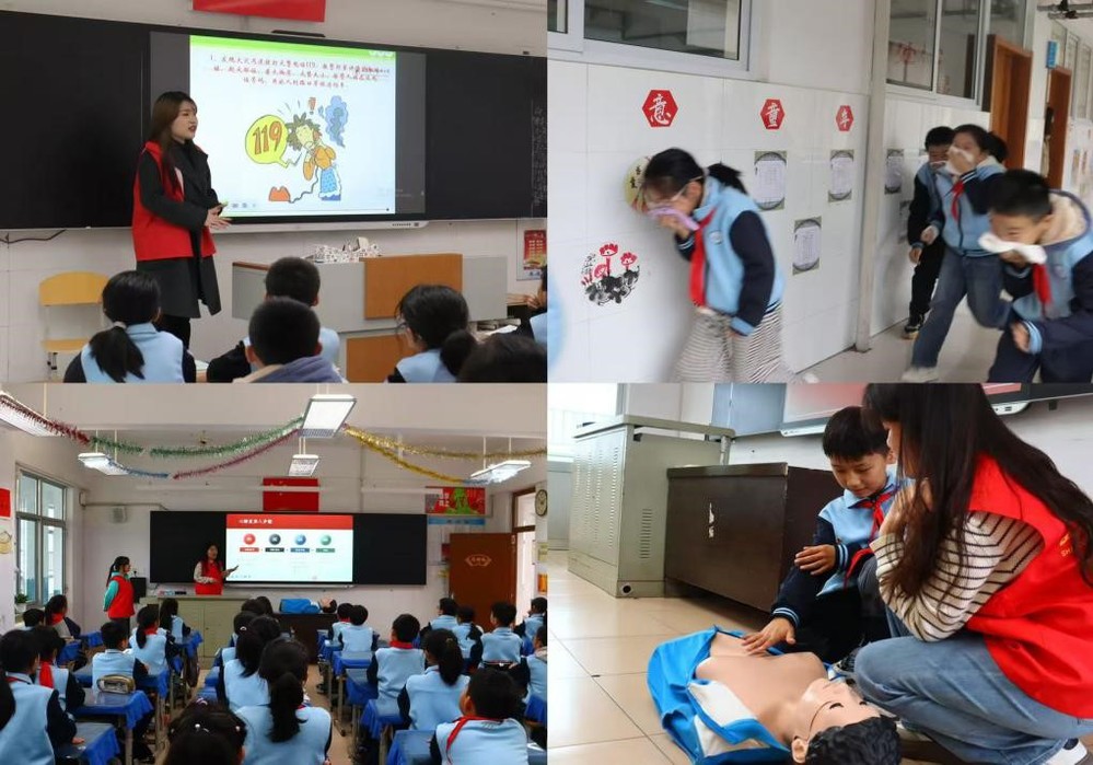 提升应急能力,共筑安全防线。当前火灾等紧急情况时有发生,烈火无情人有情,保持冷静至关重要,志愿者们组织火灾安全逃生演练活动,以问答的形式为学生们讲解急救消防知识,并在教师和志愿者的组织指引下开展消防演练,提升同学们面对火灾的逃生能力。开展急救知识宣讲活动,志愿者为学生们讲解心肺复苏术、海姆利克急救法等急救技能,用假人进行操作演示,并让同学们亲身实践,手把手教会同学们这项急救技能,引导学生掌握火灾逃生技巧和急救知识,提升自救与救助他人的能力,共同筑起一道坚实的安全防线。