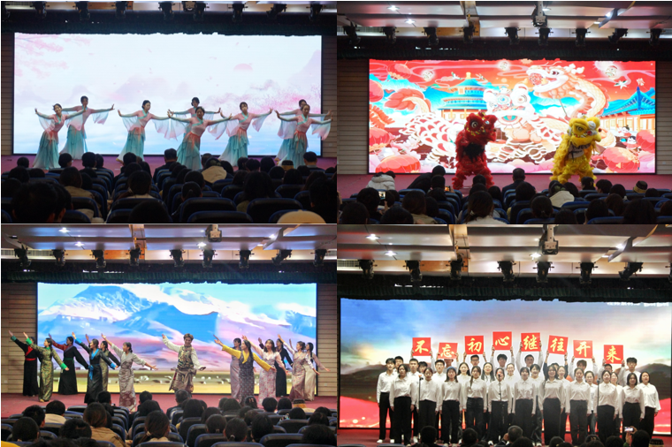 悠扬婉转的《渔舟唱晚》为元旦晚会正式揭开帷幕。民族舞《春颂》、歌舞《春韵冈巴拉姆》、舞狮《祥狮献瑞》和现代舞《attention》带来异彩纷呈的舞蹈表演,尽显中华传统文化魅力;歌曲《不该》、《你的答案》散发青年人的朝气蓬勃,洋溢学院学子的活力与热情;相声《数来宝》、小品《白雪公主和七个大高个》、朗诵《我爱学习》和情景剧《谁对周日下了黑手》利用不同的表达方式将幽默充斥在字里行间与举手抬足,令台下观众拍手称赞;最后由学院“医”口同声合唱团献唱歌曲《追寻》,颂唱大爱无疆的生命真谛,鼓舞同学们勇敢追梦,不负韶华。