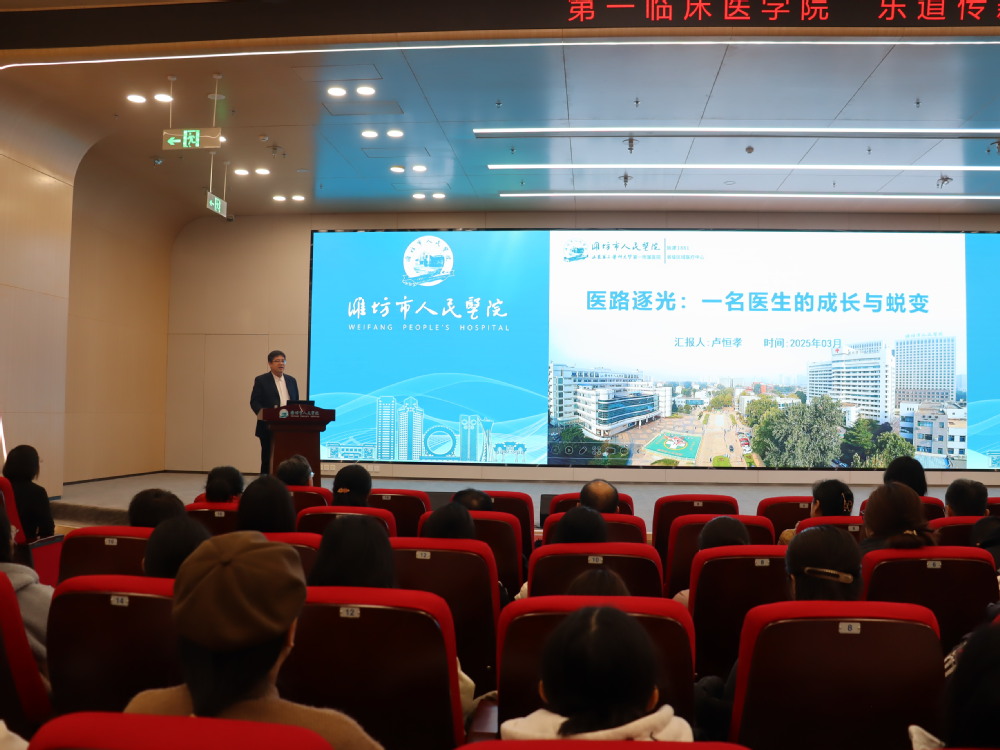 卢恒孝以《医路逐光:一名医生的成长与蜕变》为题,从“梦想起航:医学生的初心”、“漫漫求学路:知识的积累”、“临床磨砺:初入职场的挑战”,向师生讲述了一名医生的成长与蜕变。以一位学长的姿态向师生分享成长经验并表达美好祝愿。
