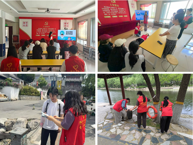 查隐患堵危险。志愿者手持防溺水手册,沿河逐户发放宣传资料,耐心讲解溺水危害,杜绝野泳、戏水等危险行为。讲知识练救援。志愿者面向周边居民开展安全知识宣讲和溺水救援模拟演练,充分发挥专业优势,结合临床急救知识,向社区居民详细讲解溺水危害、自救与互救方法。巡河道固安防。建立日常巡河机制,在重点水域设置醒目警示标志,排查防护设施安全隐患,及时修复松动的护栏,筑牢防溺水安全防线。