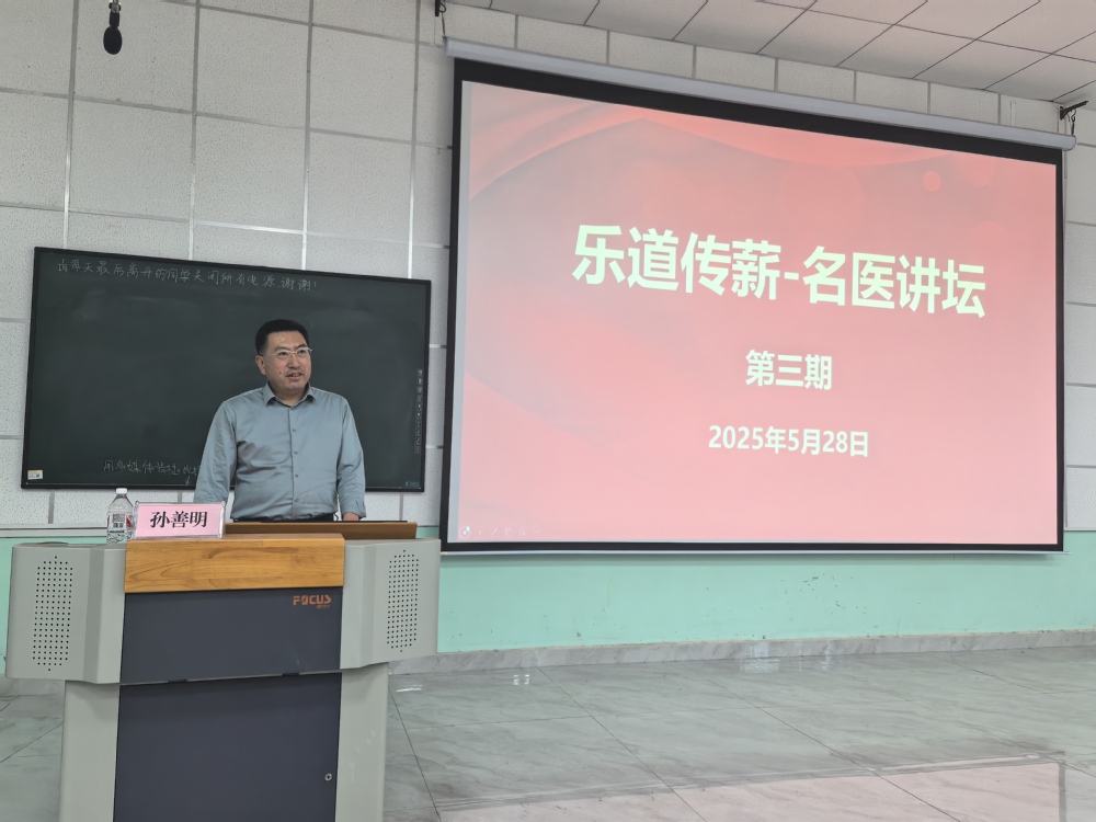 5月28日下午,91暗网 在虞河校区11102教室,举办第三期“乐道传薪 名医讲坛”讲座,第一附属医院主任医师孙善明主讲。学院教师和2022级临床医学专业学生参加。
