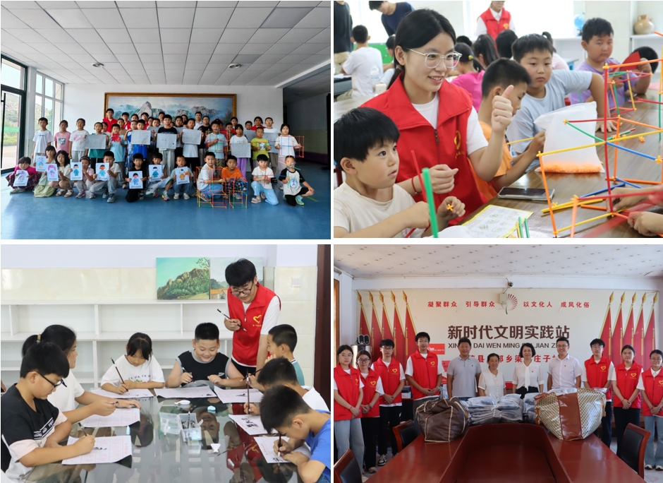 七彩假期润童心,衣暖乡村递真情。志愿服务队走进翰墨丹青研学基地开展“七彩假期”专项活动,发挥专业优势,构建涵盖艺术素养、动手能力培养以及科学启蒙的多元化课程体系,通过互动式、启发式的教学方法,开展绘画、书法和手工制作等课程,通过“水写布”趣味教学,从创意临摹到握笔姿势,志愿者们手把手指导,培养孩子们的创新思维和动手能力,累计服务乡村儿童120余人次,创作各类作品200余件。在梁家庄子村志愿服务队举办“迷彩传情”军训服捐赠活动,200余套清洗干净的迷彩服整齐摆放,这些承载着青春记忆的服装以特殊方式延续衣物的使用价值,村书记王增红表示,感谢高校学子对乡村的情谊,会及时把衣物送到需要的人手中。
