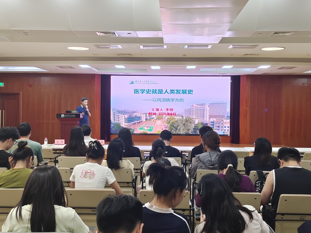 李明以“医学史就是人类发展史-以风湿病学为例”为题,系统梳理了风湿病学治疗的发展。通过大量历史文献与病例数据,生动展现了人类对风湿性疾病认知历程到精准医疗新时代,带领同学们了解医学史,激发同学们对临床医学研究的兴趣。