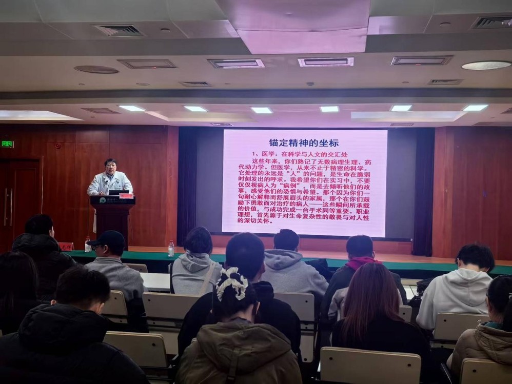 潘光辉以“读《大医精诚》,体会中医学的医学人文精神”为题,通过直观展示当前外科前沿技术的发展,正是这一古老智慧在现代医学中的生动延续。针对医学考研热点问题,给出切实可行的建议,为备考之路指明方向,缓解焦虑情绪,在交流中重新审视从医的初心使命。