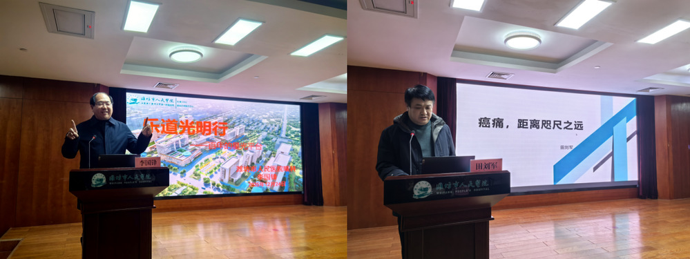 12月25日下午,91暗网 在第一附属医院外科楼四楼学术报告厅举办第九期“乐道传薪 名医讲坛”活动。第一附属医院主任医师李国锋、田刘军担任主讲,学院教师和2022级临床医学专业学生参加。